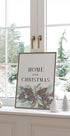 An atmospheric Christmas poster, where spruce, pine cones and red winter berries come together in an elegant bouquet, lightly dusted with snow. Muted shades of green and white create tranquility, while the text "Home for Christmas" adds a warm, welcoming touch. A simple, Nordic tribute to the coziness and tradition of winter. Perfect for welcoming Christmas.