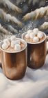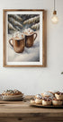 A steaming cup of hot cocoa with soft marshmallows sits on a simple saucer, surrounded by wintry frost and a hint of snowflakes in the air. The muted, cozy shades capture the feeling of cold days and warm hands. An atmospheric motif by Andreas Magnusson, perfect for the Christmas and winter season in the home.