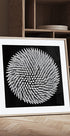 hypnosis by Giorgio Toniolo draws the eye into a monochrome swirl of concentric rings that pulsate in Fibonacci rhythm, forming a hypnotic, spherical illusion. Tight symmetry and sharp contrast unite calm and tension – a minimalist statement poster that transforms the wall into a meditative focus.
