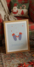 A winter-loving poster by Ohkimiko: two soft knitted mittens that meet in a heart, surrounded by falling snowflakes and cool blue-grey shades. A poetic tribute to cold and love - creates coziness in the living room, entrance hall or children's room, with simple, Nordic calm and quiet, graphic magic. Ideal as a loving gift during Advent and Christmas.