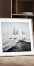 A quiet, black-and-white winter dream: A frozen stream meanders between snow-covered trees, while the fog lays a soft veil over the deep forest. The high, bright tone and fine contrasts emphasize the poetry of the cold and the rhythm of nature. Photograph by Daniel Řeřicha from Erzgebirge, Czech Republic. A timeless landscape where coldness and clarity meet in quiet poetry.