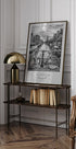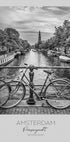 An evocative, monochrome look over the Prinsengracht in Amsterdam: bicycles lean against the railings, houseboats and gabled houses are reflected in the still water, while the Westerkerk rises in the background. A timeless metropolitan atmosphere captured by the artist Melanie Viola – elegant, graphic and urban. With subtle typography for a modern expression.