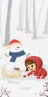 "Joyful Winter" is a heartwarming illustration of a smiling girl in a hat and scarf building a snowman while fine snowflakes fall. The soft colors and simple shapes give a cosy, Nordic expression that spreads Christmas atmosphere in the children's room as well as the living room. Created by artist Xuan Thai - perfect as a gift.