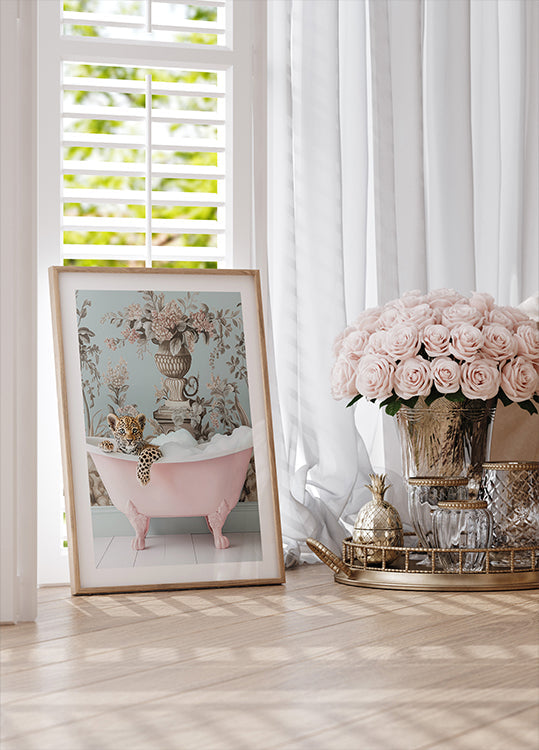 Leopard's Pink Bubble Bath by Niky Rahner Premium paper with a matte surface and an elegant appearance. The matte finish reduces glare and gives a refined, timeless look. Strong and durable for long-term use, ideal for both professional settings and decorative displays.