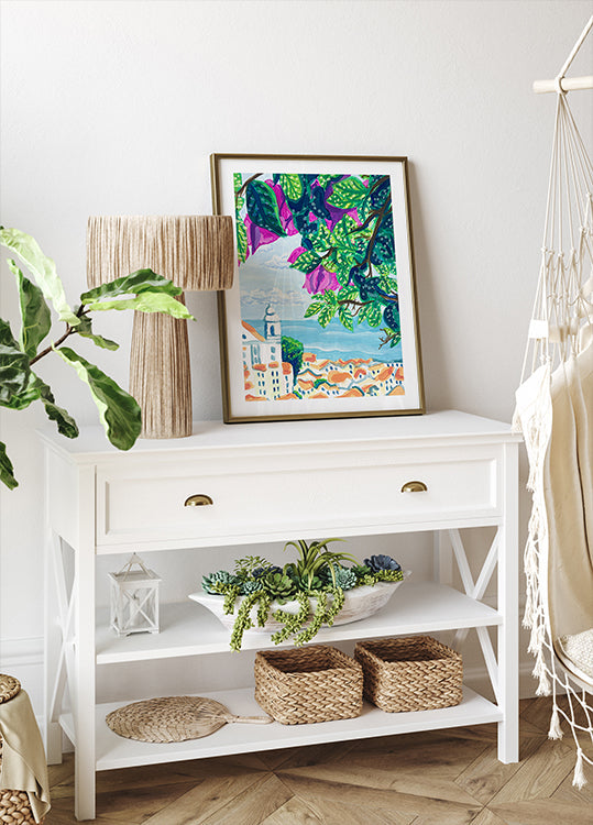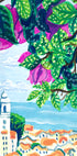 A living tribute to Lisbon: sun-drenched facades, flowers in the windows and a multitude of colorful houses that gradually fall towards the blue sea. The free brushstrokes and the impressionistic mood capture the city's pulsating energy. Overlooking hills and rooftops, bathed in warm colors. Created by Pauline Wegman | Key and Sea Creative.