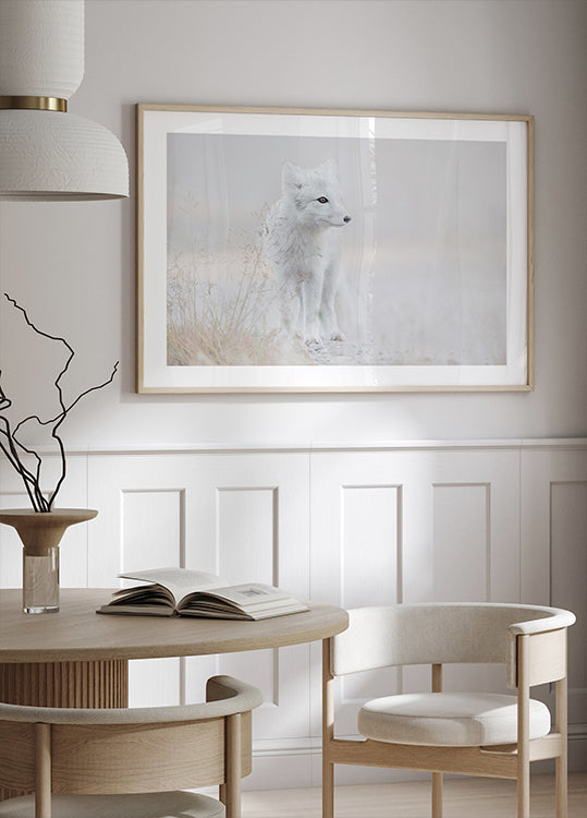 A curious arctic fox stops in the high, white light and casts a watchful eye towards the horizon. Roelof de Hoog captures the quiet poetry of winter in a bright, minimalist moment, where the fine structures of the snow and the soft fur of the fox create a calm, timeless atmosphere. The bright, almost monochrome palette highlights the animal's grace and adventurous presence.