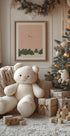 Drift into a moonlit forest where tall evergreens stand silent under falling snow. A silvered moon and a scatter of stars paint the night, while cheerful lettering greets you with "Hello winter." A vintage-tinged, family-friendly scene that bottles the calm, festive magic of the season. Perfect for cozy corners, nurseries, and holiday halls.