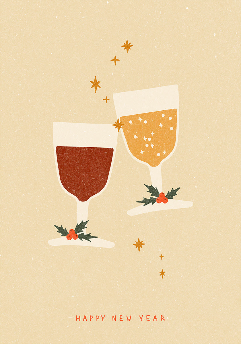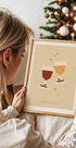 A charming illustration in vintage style: two glasses are raised to a toast, bubbles rise and snowflakes form a festive, wintry backdrop. The motif combines humor and nostalgia and captures the moment when a wish is formulated in the clink of glass - perfect for Christmas, New Year and cozy gatherings. Hang it in the bar, kitchen or living room.