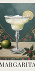 This elegant piece of art depicts a classic margarita cocktail in a decorative glass, garnished with a lime wedge. Set against an ornate background, it combines vintage charm with a refined preparation of this timeless drink. Perfect for bar decoration and cocktail themed interiors.