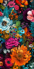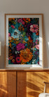 The Meadow Flowers 6 poster is a lively tribute to the beauty of nature, filled with lush botanical details and a spectrum of vibrant colors. Against a deep black background, each flower is allowed to shine with intensity – from flaming orange petals and bright pink flowers to cool blue accents and lush green leaves. The intricate linework and rich layers create a sense of depth that makes the flowers appear almost tangible. Perfect for adding bold elegance and a lively atmosphere to any space, this piece captures the energy and diversity of a blooming meadow in full bloom.