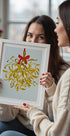 Bring Nordic calm to your winter walls with Annick's minimalist mistletoe: fresh green sprigs and pale berries gathered by a bold red bow, floating on a crisp white ground. A graceful nod to holiday tradition and cozy kisses, it brightens hallways, dining rooms, and snug reading corners. Perfect for quiet, modern spaces.