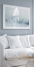 Misty Pines by Lynann Colligan captures a calm winter morning, where the dark silhouettes of the fir trees disappear in bluish mist. Layers of haze and subdued light create depth and a meditative atmosphere that draws the eye in between the trees. A quiet, Nordic poetry for the wall. Perfect for rooms that seek calm and depth.