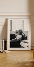 An elegant black and white photograph of a woman relaxing with a towel wrapped around her hair while reading Vogue. The artwork captures a moment of luxurious calm and effortless sophistication, perfect as a statement in interiors inspired by fashion, beauty and modern elegance.