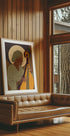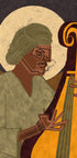A stylized lute player appears in a modern, geometric composition, where vibrant colors and textures pulse like the rhythm of the music. Patterns weave figure and instrument together in a spiritual, iconic expression. MUSICIAN GUY IX by Gulcihan Ozguc is a bold eye-catcher for homes and creative spaces in modern interiors.