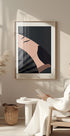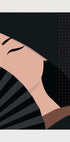 A captivating portrait of a geisha partially hidden behind a traditional fan, her eyes slightly closed under a dark hat. The clean lines and muted tones give a sense of mystery and elegance — perfect for Japandi, cultural or modern interiors.