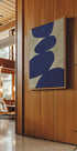 A modern abstract poster with striking navy organic shapes stacked in a balanced, stone-like arrangement on a textured beige background. The minimalist design and soothing palette create a sophisticated aesthetic, perfect for Japandi, Scandinavian or modern interiors.