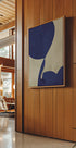 A striking abstract poster with large, flowing navy blue shapes contrasted against a textured beige background. The organic movement of the shapes creates a sense of flow and elegance, making this piece a versatile statement for modern, Japandi or minimalist interiors.