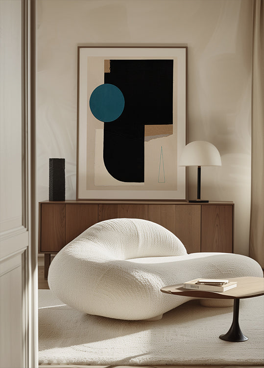 Noche Oscura I by Ildefonso Martín unites dark tones and a deep blue circle in a calm, geometric balance. Layers of collage and fine pencil marks create texture and depth, while the contrast between black and blue gives the subject a mysterious glow. A modern, abstract composition with meditative power. Creates a quiet focal point in the living room, gallery or office.