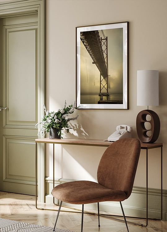 A hush falls over Lisbon as mist drifts across the Tagus, revealing the sleek span of the Vasco da Gama Bridge beyond a solitary cross in the foreground. In warm sepia-yellow tones, photographer Ricardo Mateus captures a contemplative moment of faith and architecture, where river, sky, and city fade into poetic calm.
