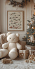 A quiet winter tale: A bear and a little rabbit cross the calm light of the white snowfields, while red and blue-green tones provide classic Christmas cheer. With a touch of vintage charm, the piece captures the warmth of the cold season. Created by artist Olena Kovalova – poetic, calm and timeless. Perfect as an atmospheric Christmas motif in the living room.