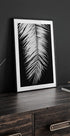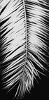 Palmblad_004 is a monochrome close-up of an elegant palm leaf, where light and shadow run like graphic lines over the fine ribs. The deep, black background creates drama and calm at the same time, while the rhythm of the leaf gives the room a minimalist focal point—perfect for Nordic decor and a hint of Japandi.