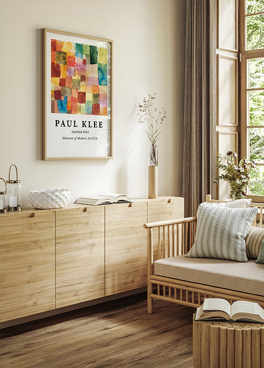 A lively and dynamic artwork by Paul Klee from 1914, depicting an abstract mosaic of vibrant colors. This watercolor painting demonstrates Klee's unique ability in color theory and his distinctive style of geometric abstraction. The interplay of warm and cool hues gives the work a rhythmic and harmonious feel, ideal for modern art collections.