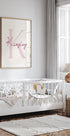 A cute and minimalist name poster with a large initial and elegant handwriting. The soft background with small hearts and warm pastel colors make it a timeless piece of art — perfect for a child's room or as a gift for a newborn.