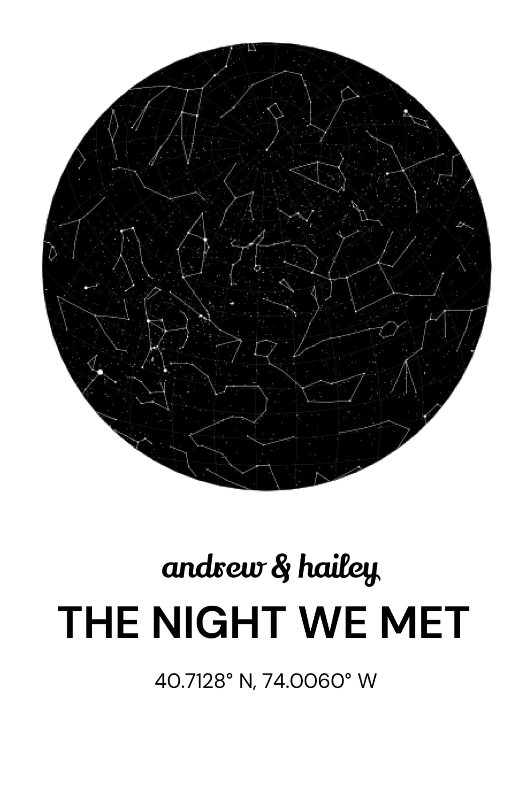 Make a memorable moment unforgettable with a personalized star map. It shows how the stars aligned on a special date and place — ideal as a gift for a wedding, anniversary, or other big event.