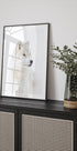 An enchanting close-up of an arctic wolf, captured in snow-white tranquility with icy blue piercing eyes and fur dusted with frost. Jim Cumming frames the wild dignity of the animal in a bright, minimalist expression that brings silence, strength and northern magic into the room. Perfect as a quiet focal point in the living room, bedroom or home office.