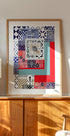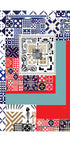A vibrant, Portuguese-inspired abstract pattern where azulejo references, stripes and graphic shapes intertwine in dynamic rhythms of blue, red, black and golden hues. A tribute to Portugal's idiom, created by Awol Art Alex, which lifts everything from the living room to the office with graphic calm and colorful warmth.