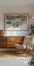 A quiet winter atmosphere unfolds in front of a Japanese post office: snowflakes settle on the streets and roofs, frost creates patterns in the windows, and the cool city skyline stands out sharply against the bright sky. “Post Office Japan” by Sarah Oliveira captures urban poetry with calm, rhythm and graphic precision. A subtle color palette gives the motif a timeless calm.