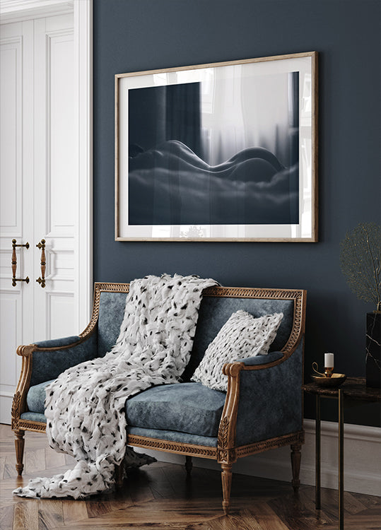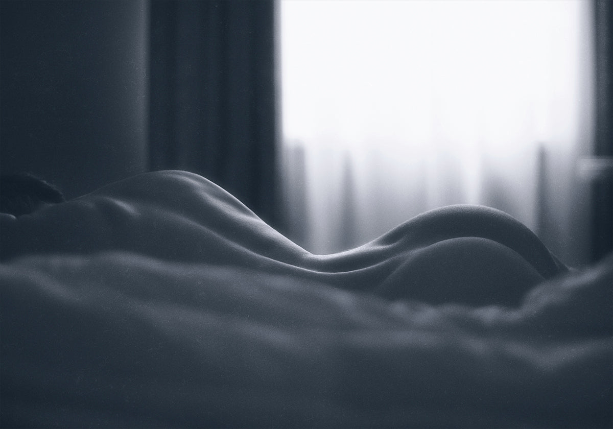 This evocative monochrome bodyscape captures the sensual curves of the female body bathed in soft window light. The fine interplay between shadows and light highlights the figurative elegance and creates a refined work of art that unites intimacy, sensuality and artistic sophistication.