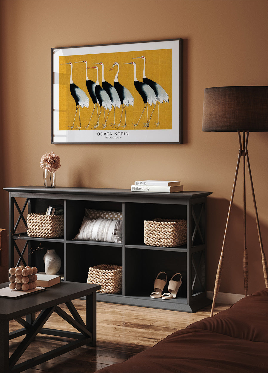 This poster features "Red Crane" by Japanese artist Ogata Korin. Korin was known for his ability to combine traditional Japanese style with innovative techniques. The image of the majestic red-crowned crane symbolizes good fortune and longevity in Japanese culture and is beautifully executed with detailed brushstrokes and a stylized aesthetic. Perfect for bringing a sense of tranquility and cultural richness to any interior, this poster is particularly suitable for spaces that need a calming, nature-inspired atmosphere.