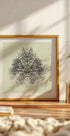 A graphic, mirrored pattern of branches forms a hypnotic silhouette reminiscent of a Rorschach test. The organic lines create new figures with every glance and invite interpretation. The clean, light background gives the motif space and makes the work by Nadav Jonas a strong, modern statement in the home.