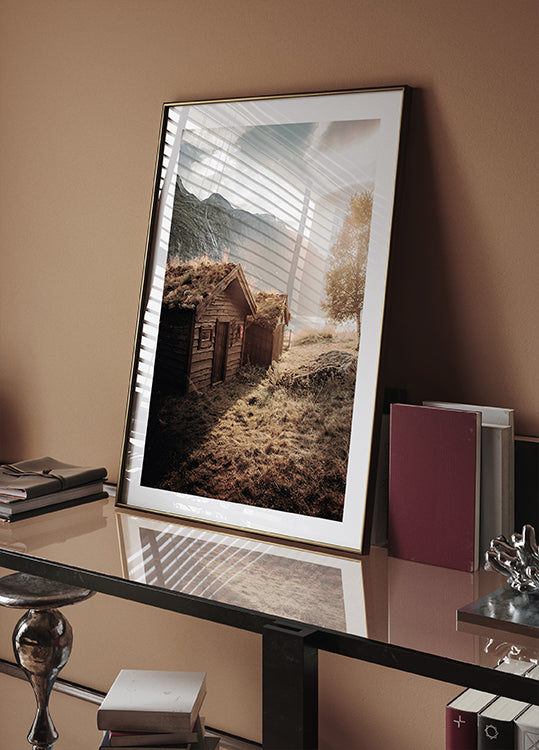 Rustic Houses at Sunset by Lovatnet Lake Poster
