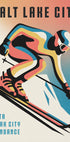 A retro-inspired Salt Lake City poster by Andreas Magnusson: The snow-capped Wasatch Mountains loom over the valley as pistes wind through dark pine forests. Discreet nods to Alta, Park City and Sundance create travel fever and a winter mood - ideal wall art for skiing enthusiasts and daydreamers. Perfect as an eye-catcher in the living room or cabin.