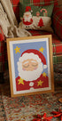A modern and exuberant Christmas poster with Santa Claus surrounded by sparkling stars. The warm red suit glows against a deep blue night sky, while yellow star sprinkles create a playful, cozy expression. A charming eye-catcher for seasonal decorations - illustrated by Bainai, full of joy and winter magic. Perfect for living room, entrance hall or children's room.