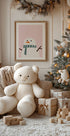 A charming snowman stands in the middle of a gentle snowfall in front of a pink, pastel-colored sky. Small birds settle around him and give the scene life and warmth, while a playful line and soft colors create a calm, cozy winter atmosphere. Perfect for the children's room or the Christmas nook. A sweet gift idea for winter comfort and snowy dreams.