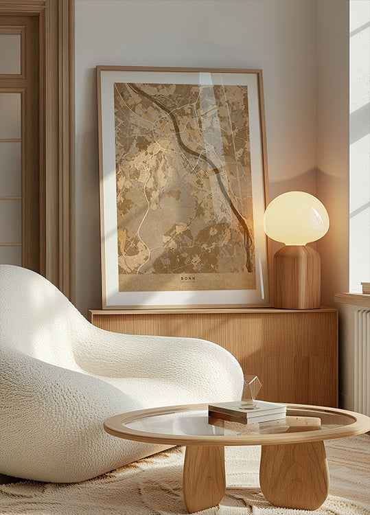 This sepia-toned vintage map of Bonn captures the soul of the city with a beautiful network of streets, neighborhoods and the meandering Rhine dividing the landscape. The warm tones and fine textures give a nostalgic, timeless expression, perfect for highlighting wanderlust, history and urban elegance on the wall. A stylish focal point for any decor.