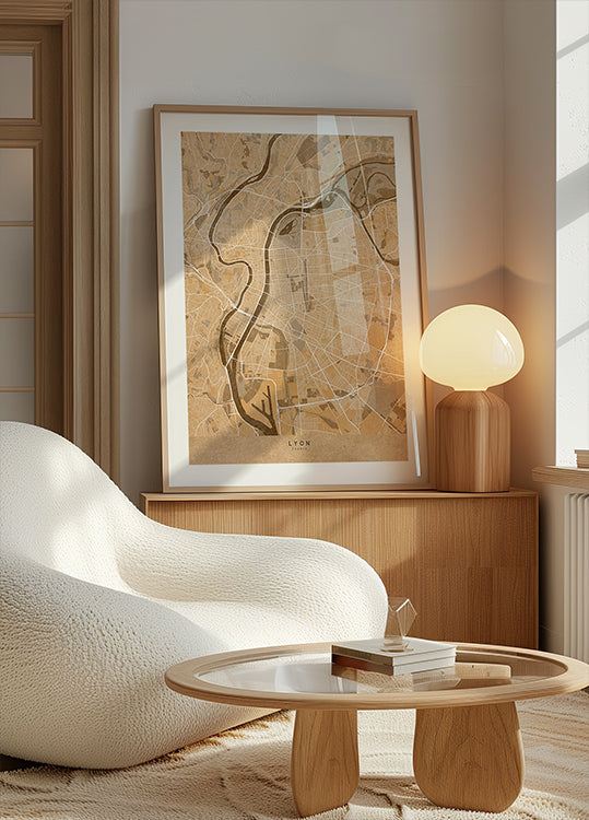 Sepia vintage map of Lyon France Poster