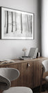 A quiet winter landscape unfolds in fog and frost, where slender beech trunks stand as graphic lines in a subdued, snowy forest space. The light is softly filtered through the haze and creates a meditative eye-catcher that captures the tranquility between the trees. A poetic nature photograph by Tom Pavlasek. Perfect for a winter atmosphere in the home.