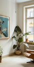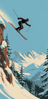 Skier Jumping by Andreas Magnusson captures the moment when a brave skier flies through the clear alpine air. Snow-covered peaks, sharp contours and a retro color palette create a dynamic, nostalgic atmosphere that celebrates speed, freedom and the timeless lines of winter sports' graphic aesthetics. Ideal for the wall of the ski hut.