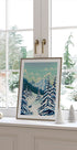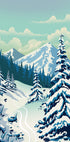 A timeless winter poster by Nicholas: soft, blue hues, sun over snowy peaks and a peaceful forest of firs. The soft shapes and retro-inspired details create a calm skiing atmosphere - perfect for those of you who dream of freshly powdered snow, clear skies and quiet tracks in the mountains. Inspired by classic travel posters and the love of the mountains.