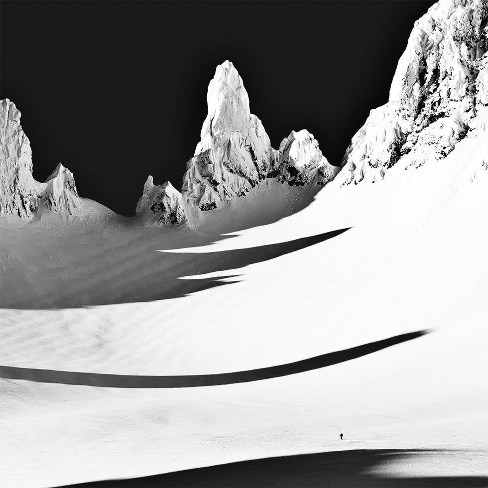 Small and big by Åsmund Keilen captures a single ski track in a colossal, black-and-white mountain landscape. A small skier moves under steep ridges and vast expanses of snow in Norway, where the winter light cuts sharply through the silence. A dramatic study in scale, courage and thoughtful calm that calls for adventure and reflection.