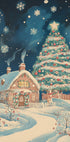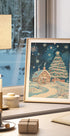 An atmospheric winter town covered in snow unfolds: small houses in muted beige tones, green fir trees and soft snowflakes create a calm, nostalgic Christmas atmosphere. The picturesque, retro-inspired composition is perfect for the living room or children's room and brings warm coziness to dark days and long winter evenings.