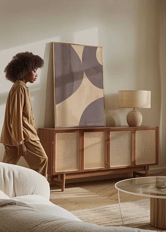 This modern abstract poster features smooth, curved shapes in earthy shades of mauve and beige. The organic shapes and soft watercolor texture create a harmonious flow — ideal for adding depth and elegance to minimalist spaces. Hung alone or as part of a gallery wall, this artwork brings calm and sophistication to any home decor.
