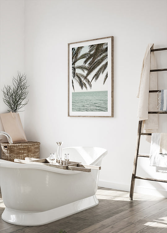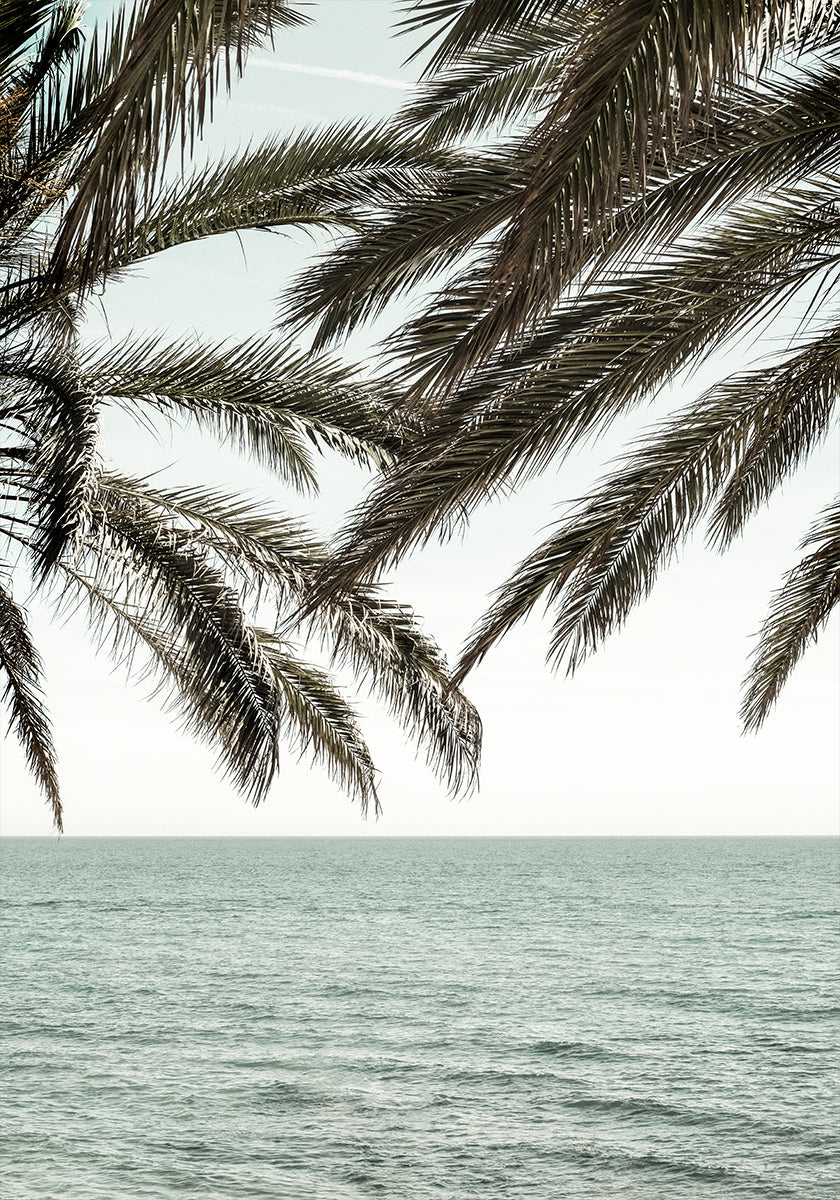 Solaris No.4 captures a tranquil coastal scene bathed in golden sunlight: soft waves meet the warm horizon, while a slender palm sways lightly in the breeze. The sun-ripened, muted colors and the minimalist cut evoke a desire to travel and summer memories. A poetic composition by Pictufy Studio III. Perfect for living room, bedroom or summer house.