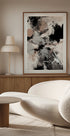 A modern abstract composition, where soft beige and pink tones are broken by energetic brushstrokes and graphic shapes. The layers overlap like a controlled storm and create rhythm, depth and movement. An elegant eye-catcher that adds warmth and vitality to the living room, hallway or creative corner. Inspired by Nordic tranquility and modern graphics.