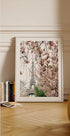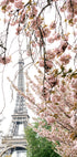 A romantic photograph of the Eiffel Tower surrounded by blossoming cherry trees in soft pink hues. This elegant poster captures the mood of Paris in spring and adds a dreamy, sophisticated look to any decor. Perfect for the bedroom, living room or as a gift for someone who loves travel and art.
