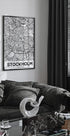A stylish and detailed black and white map poster of Stockholm, elegantly highlighting the city's streets, waterways and iconic island landscape. The fine lines and graphic patterns give the poster a modern and timeless look that fits perfectly in both minimalist and Scandinavian homes. Ideal for anyone who loves Stockholm, has memories of the city, or wants a beautiful piece of geographical art on the wall.